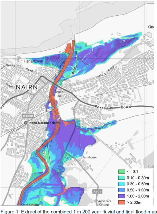 Nairn is in the unfortunate position of being cleft between two local authorities, Highland to the west and Moray to the East, with Moray Council being the lead authority with regard to Flood Risk Management.